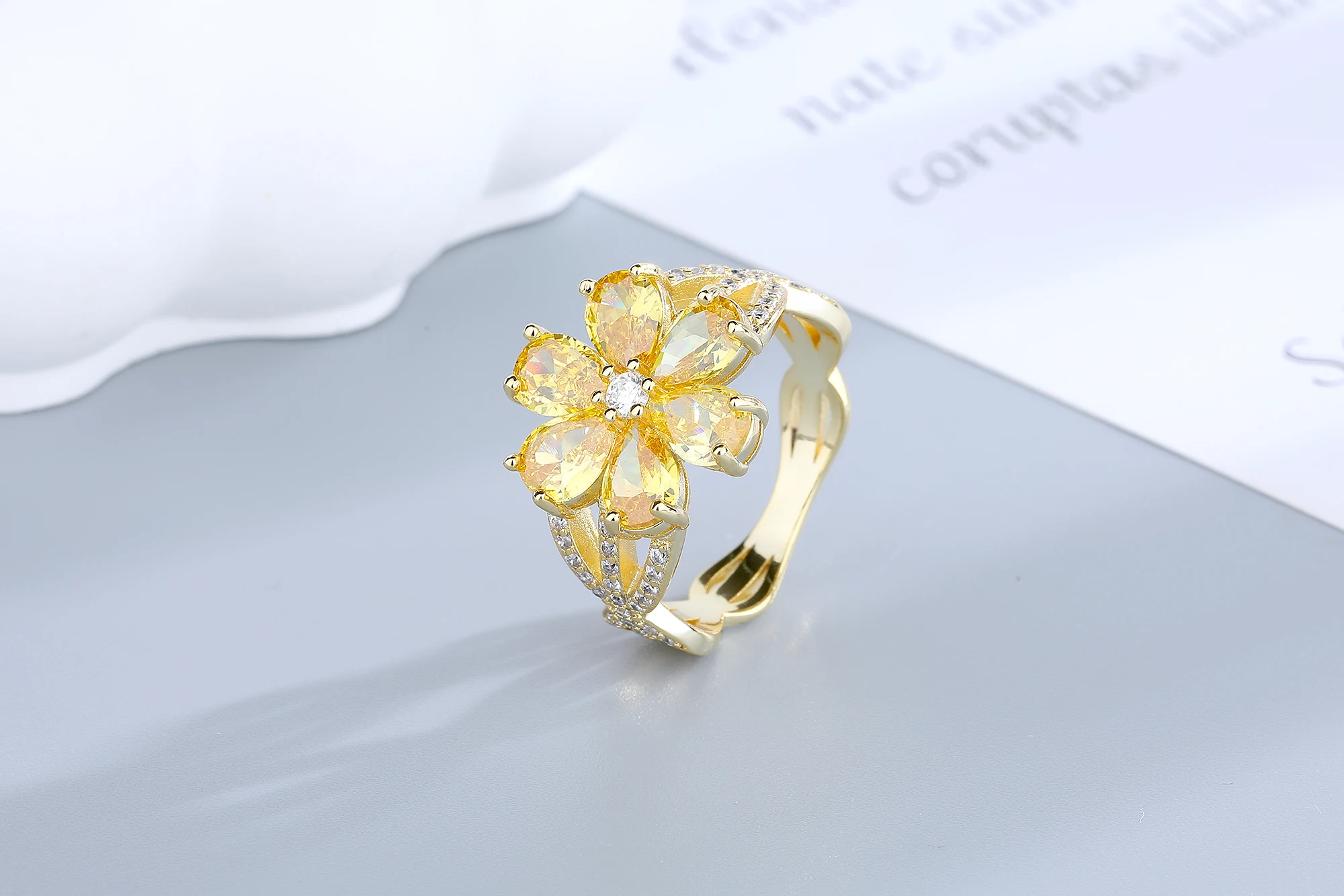 Sparkling Zircon Engagement Wedding Rings 18K Gold White Gold Plated Fine Jewelry