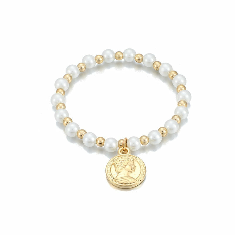 6pcs/set Fashion Gold Color Beads Pearl Star Multilayer Beaded Bracelets Set