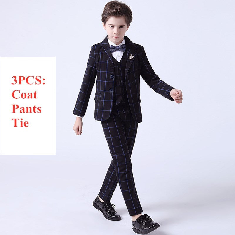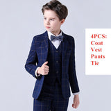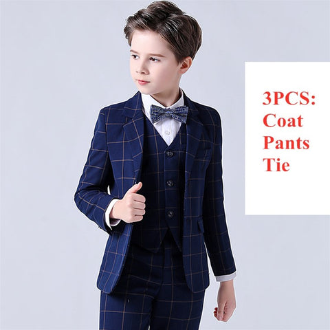 Boys 3 Pieces Suit Set Plaid Wedding Party Suit Kids Formal Tuxedo