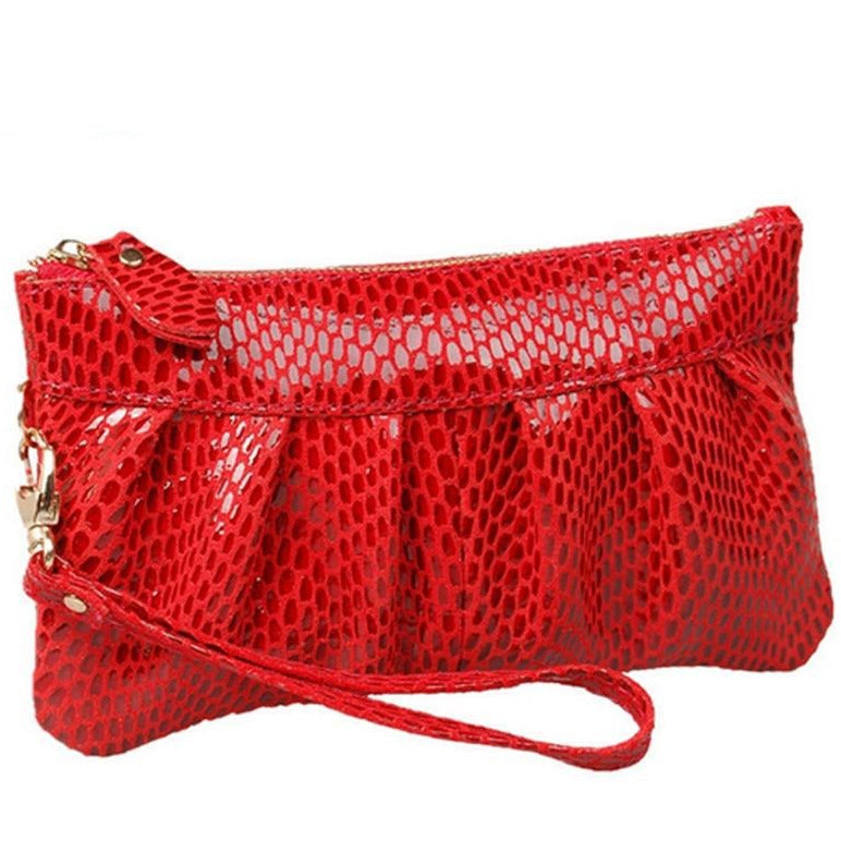 Fashion Serpentine Women's Handbag Genuine Leather Small Soft Clutches