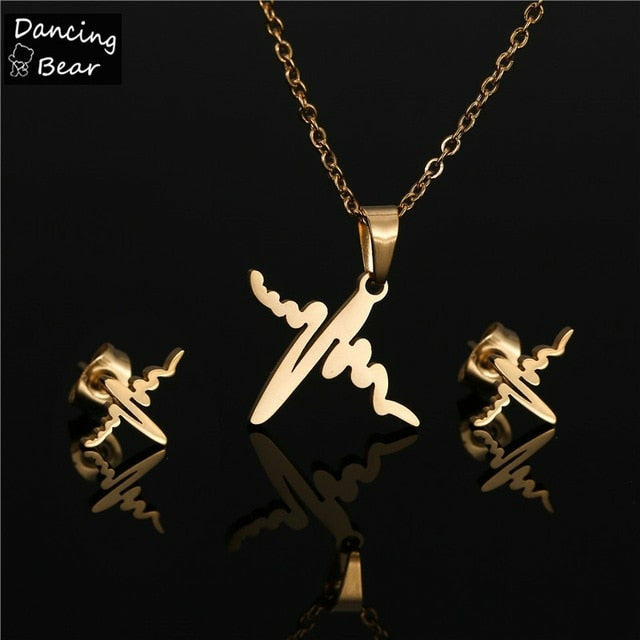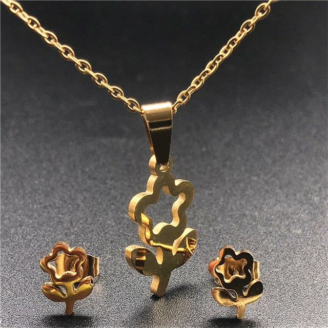 - ENVIRONMENTALLY FRIENDLY MATERIAL: Made of 316L medical stainless steel, healthy and beautiful, chain size 18 inches, pendant 20MM, earrings 10MM