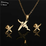 GOLD PLATED UNIQUE SHAPE PENDANT EARRINGS JEWELRY SET