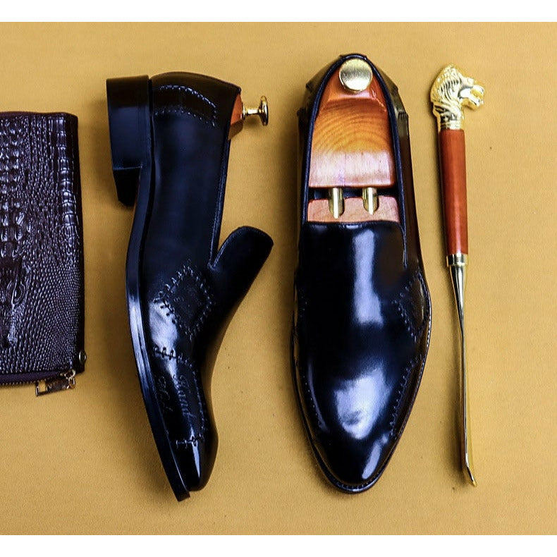 - Step into style and comfort with our Men's Loafer Genuine Leather Shoes. Crafted with high-quality leather and a slip-on design, these shoes are perfect for weddings, formal events, or just everyday wear.