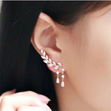 New Fashion Angel Wings Leaf Feather Flowers Stud Earrings Women Wedding Jewelry