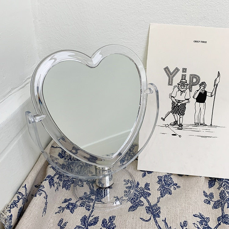 - This Rotatable Double-Sided Blob Mirror 360 Degree Swivel Desktop Makeup Mirror is made of durable and lightweight acrylic and aluminum mirror.