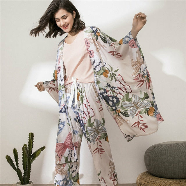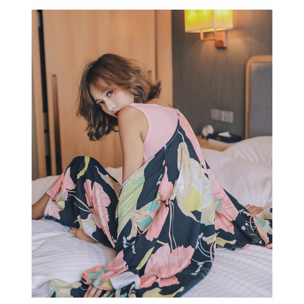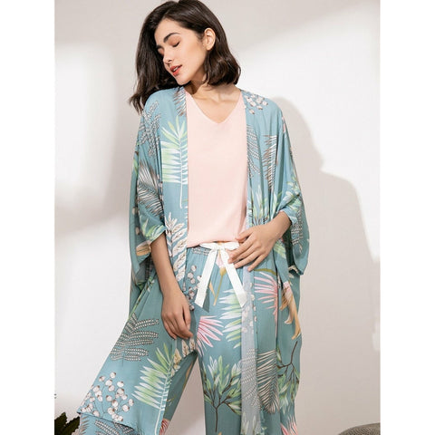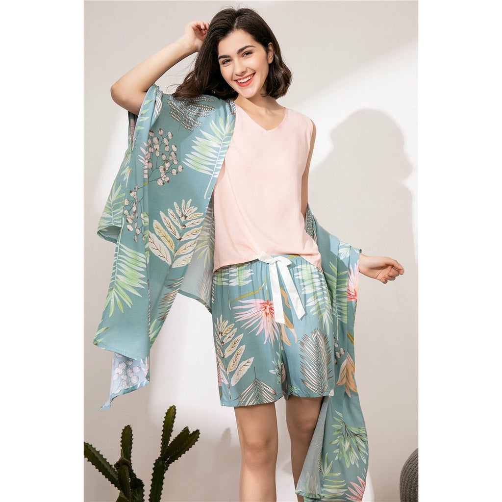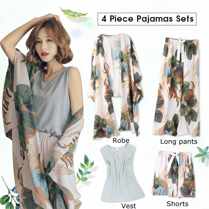 4 Pieces Soft Pajamas Sets Floral Printed Sleepwear With Shorts Women Nightwear