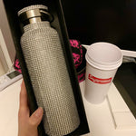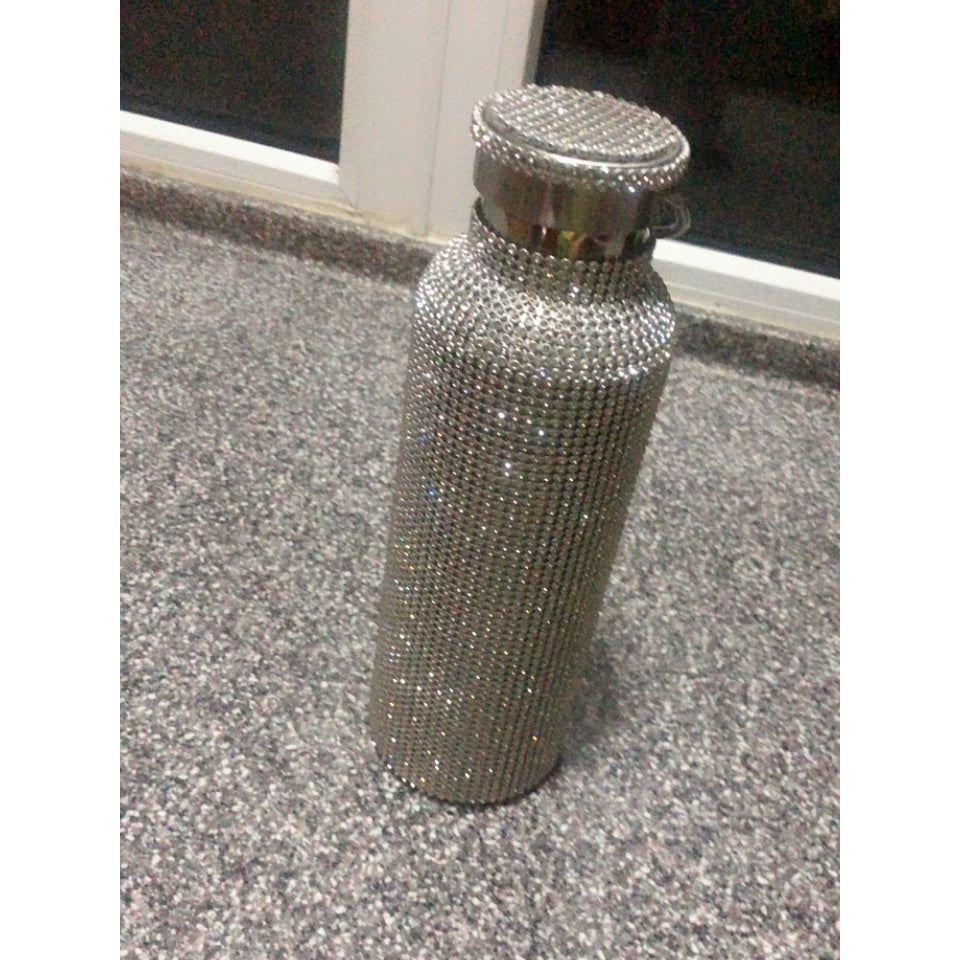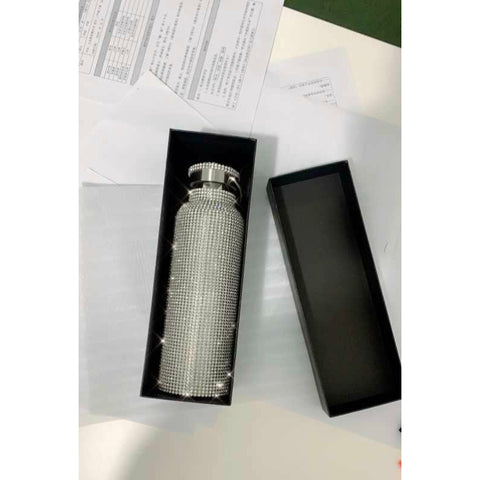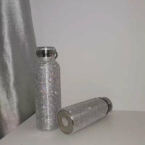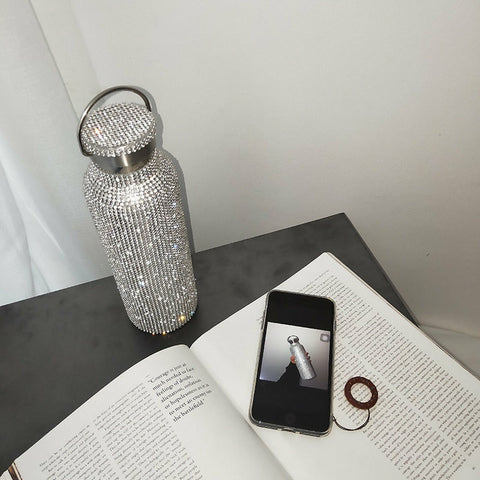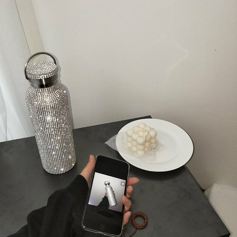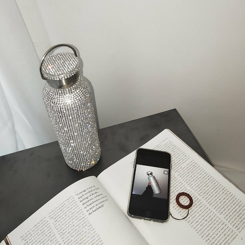 Sparkling High-end Insulated Bottle Bling Rhinestone Stainless Steel Thermal Bottle Diamond Thermo Silver Water Bottle with Lid
