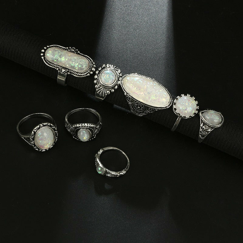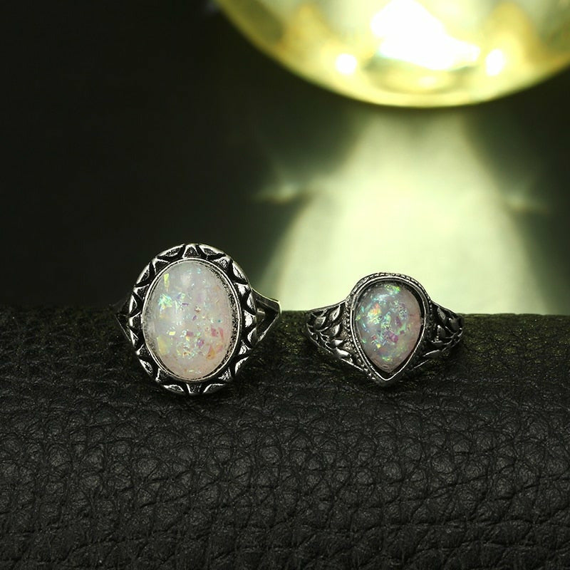 VINTAGE ANTIQUE OPAL STONE SILVER RINGS WOMEN JEWELRY