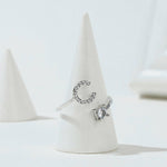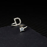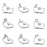 INITIAL LETTER ADJUSTABLE SILVER RINGS JEWELRY