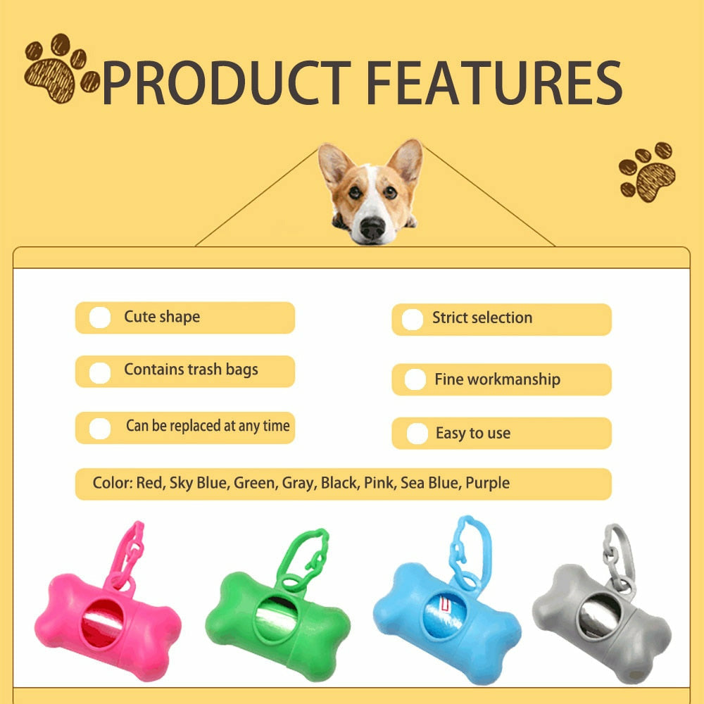 - A cute bone shape waste bag dispenser makes picking up after your dog simple and convenient.