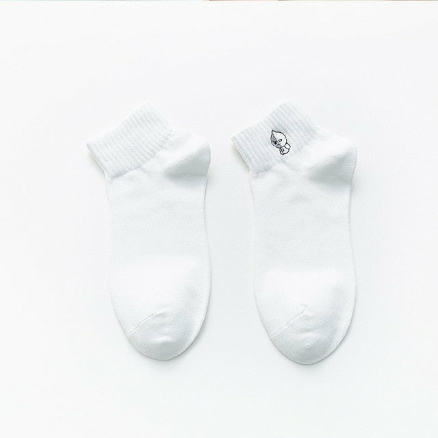 - LADIES COLORFUL SOCKS: An absolute essential for anyone with an artistic or creative personality. Features prints or embroidered cartoon characters patterns including bears, owls, puppies, kittens, and more. These ankle socks will reach a little past the ankle for a stylish and youthful look.