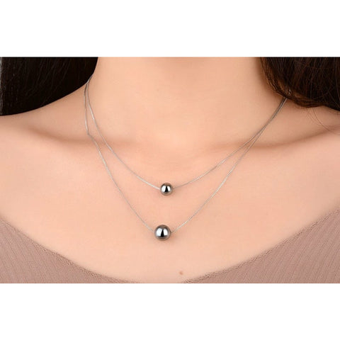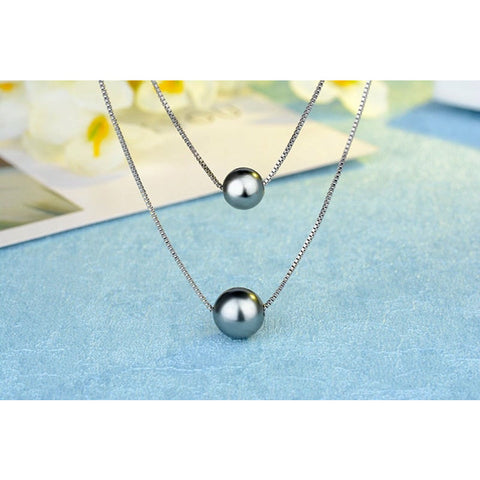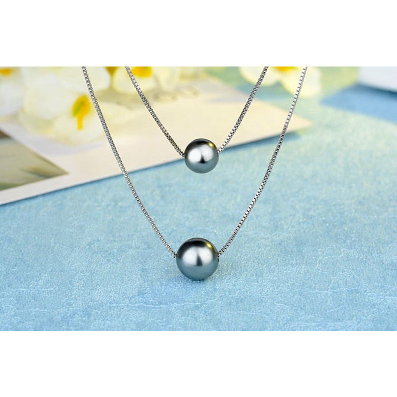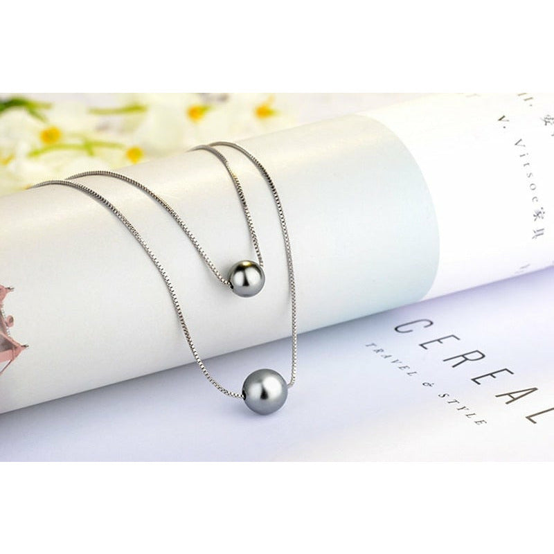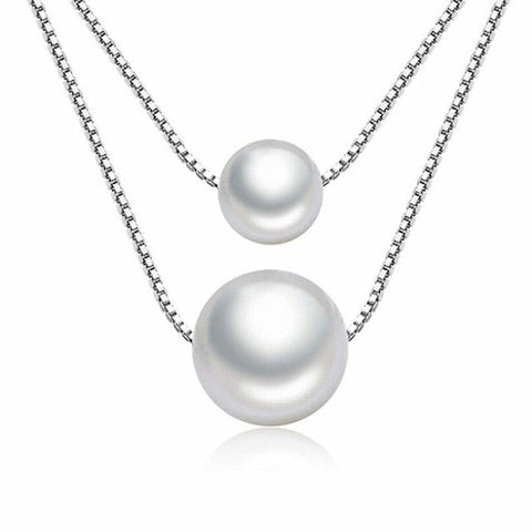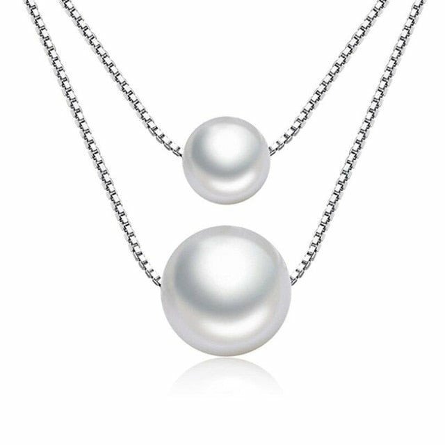 New Fashion Double Layer Pearl Pendant Necklace Silver 925 Jewelry For Women
