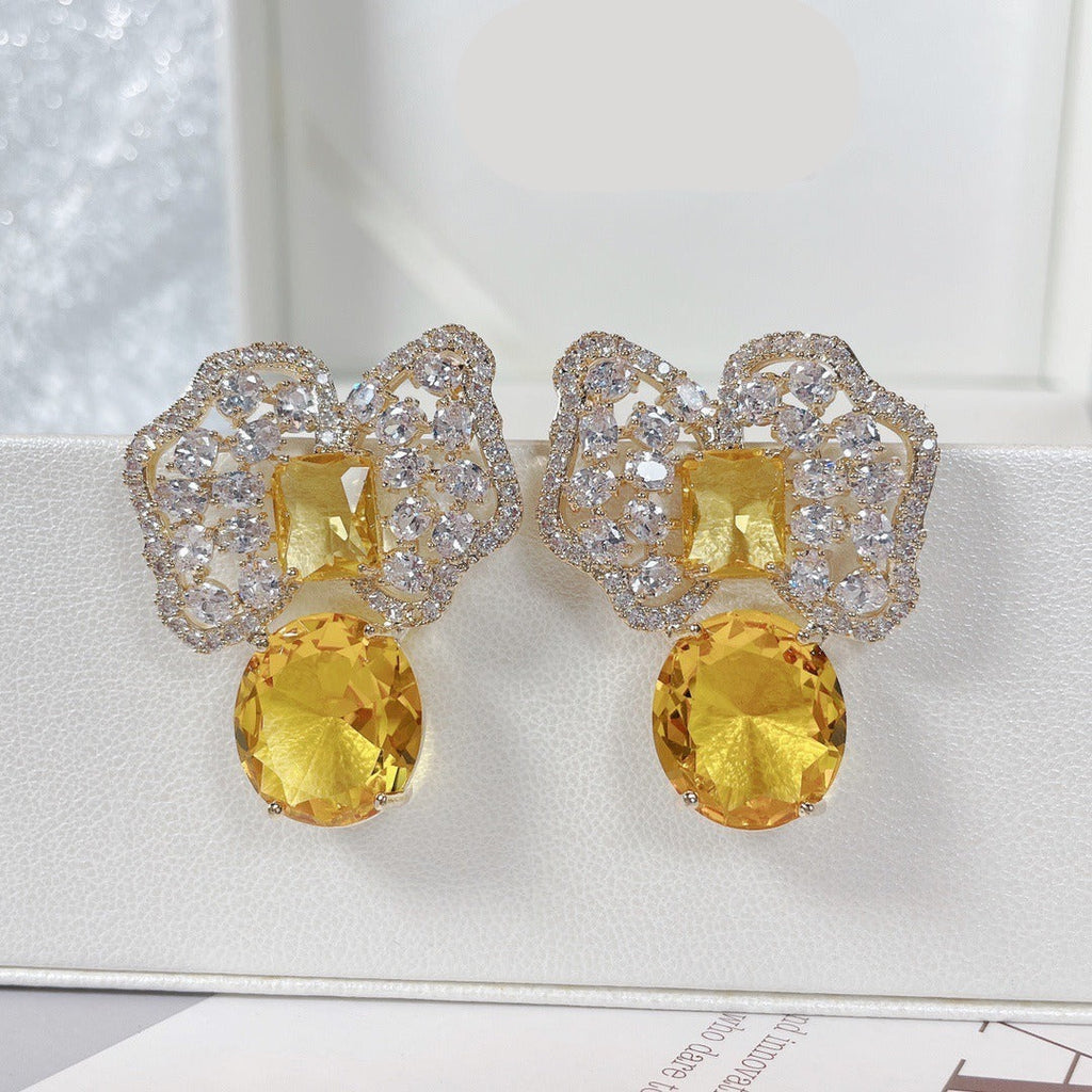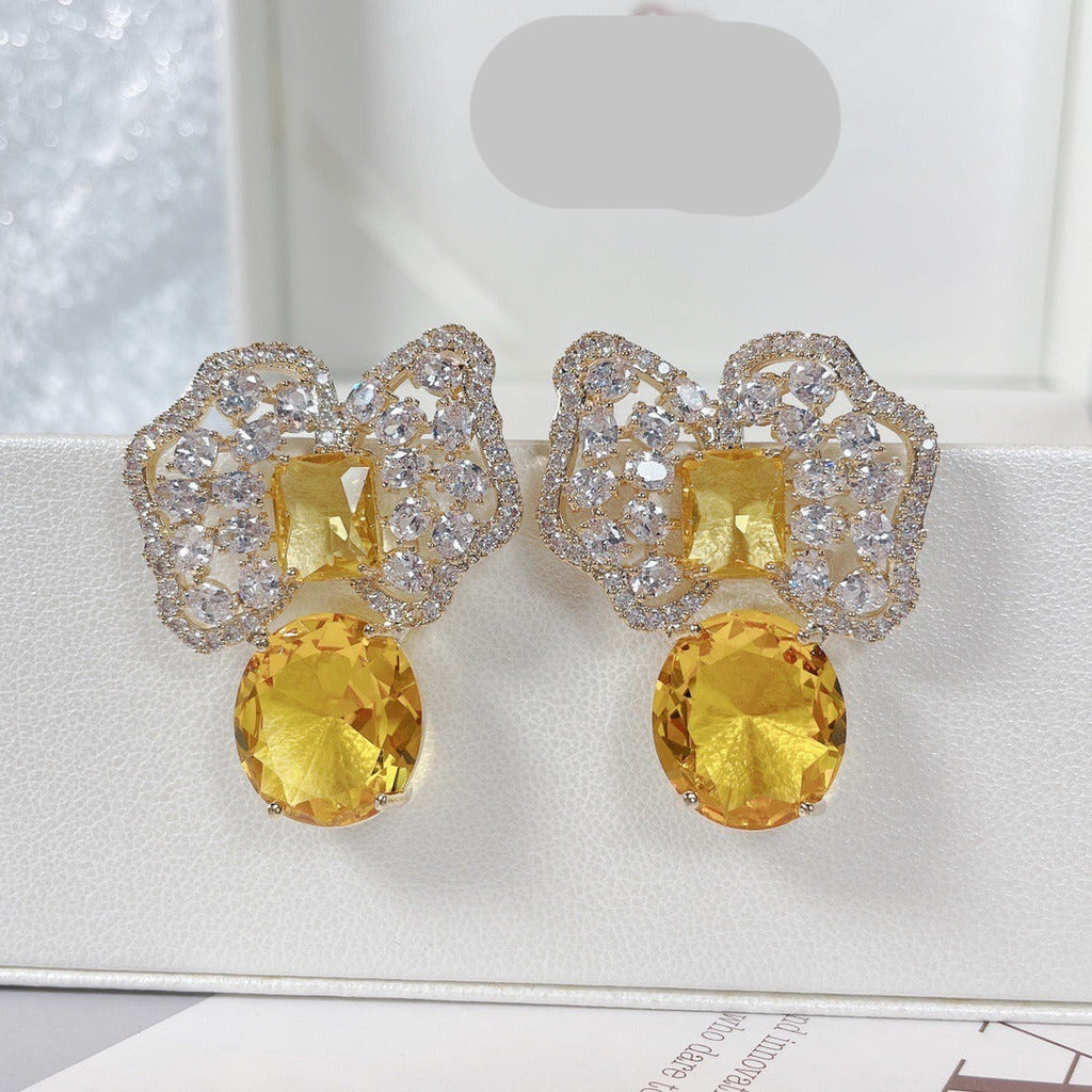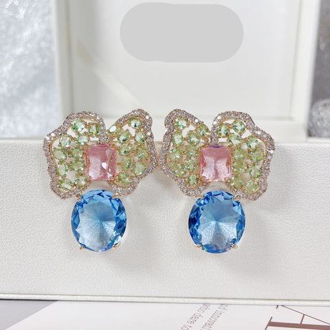 Fashionable colored zirconium petals light luxury earrings