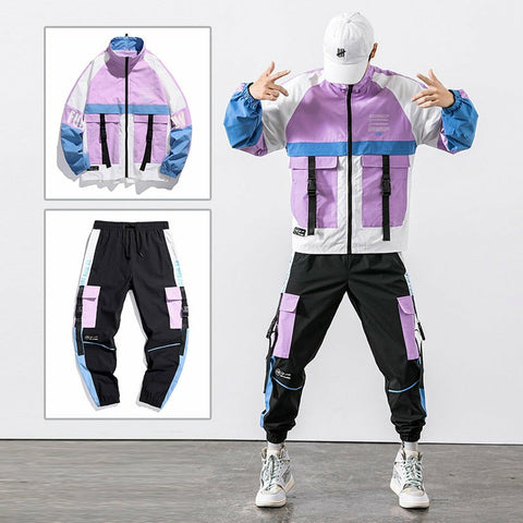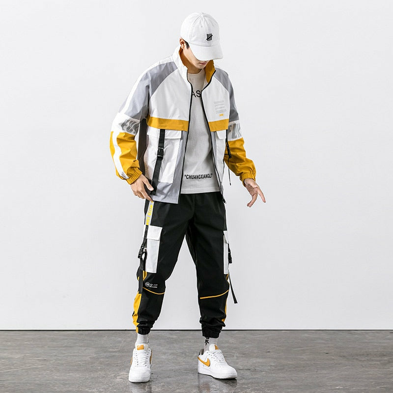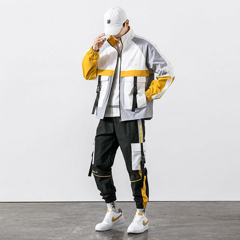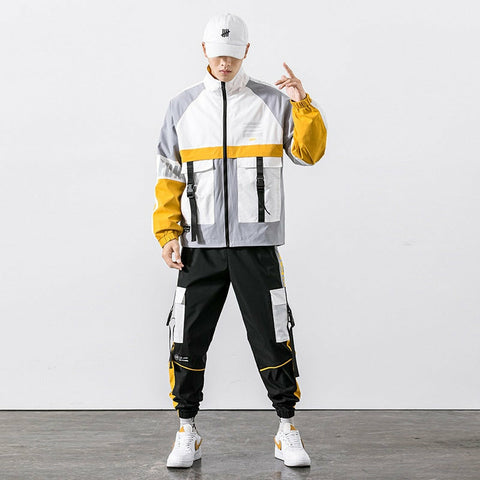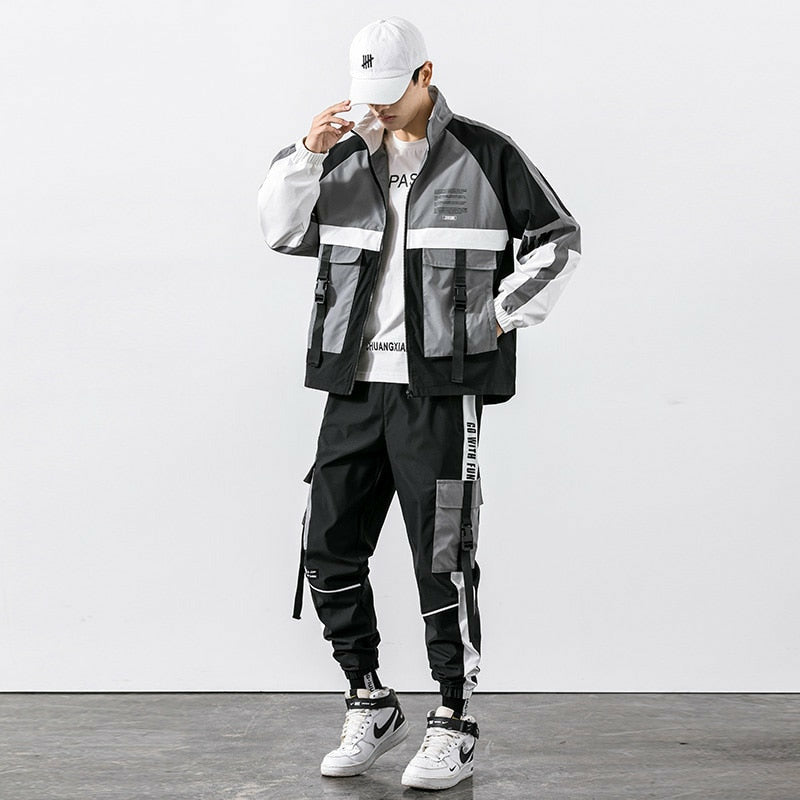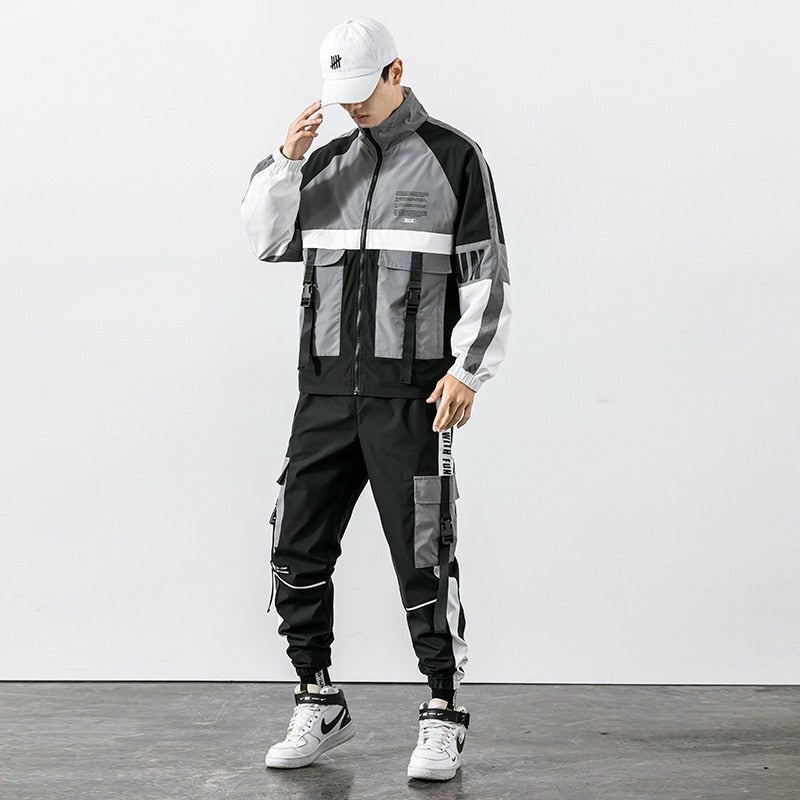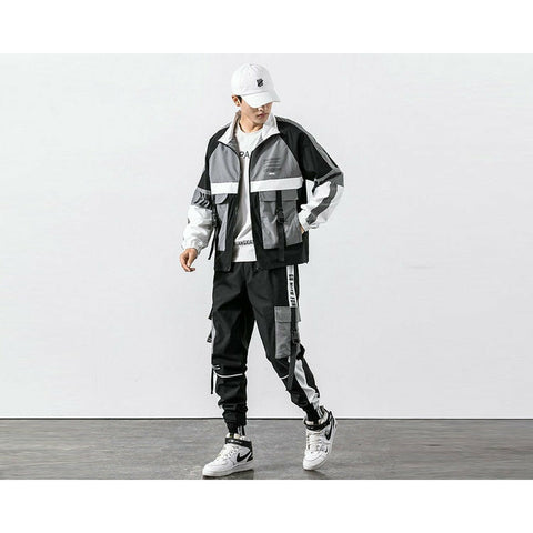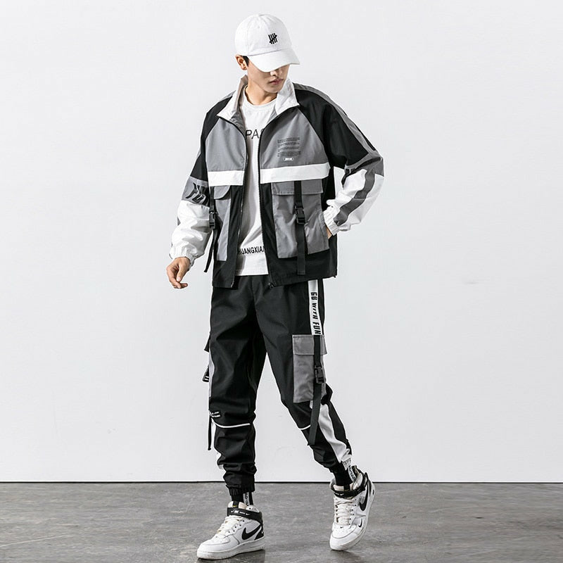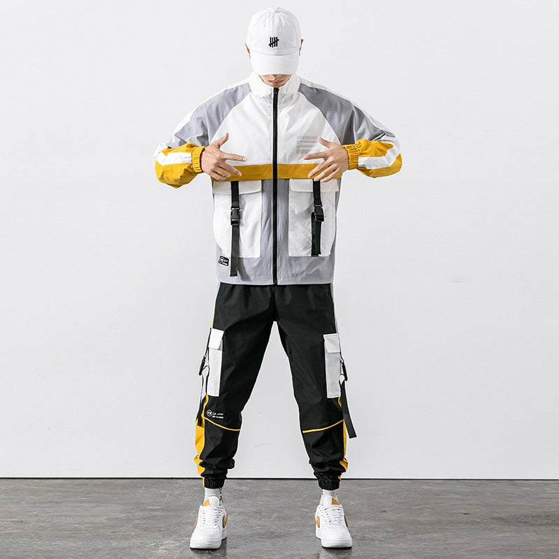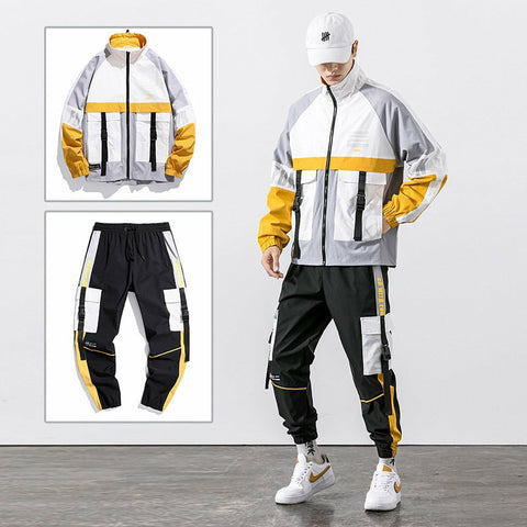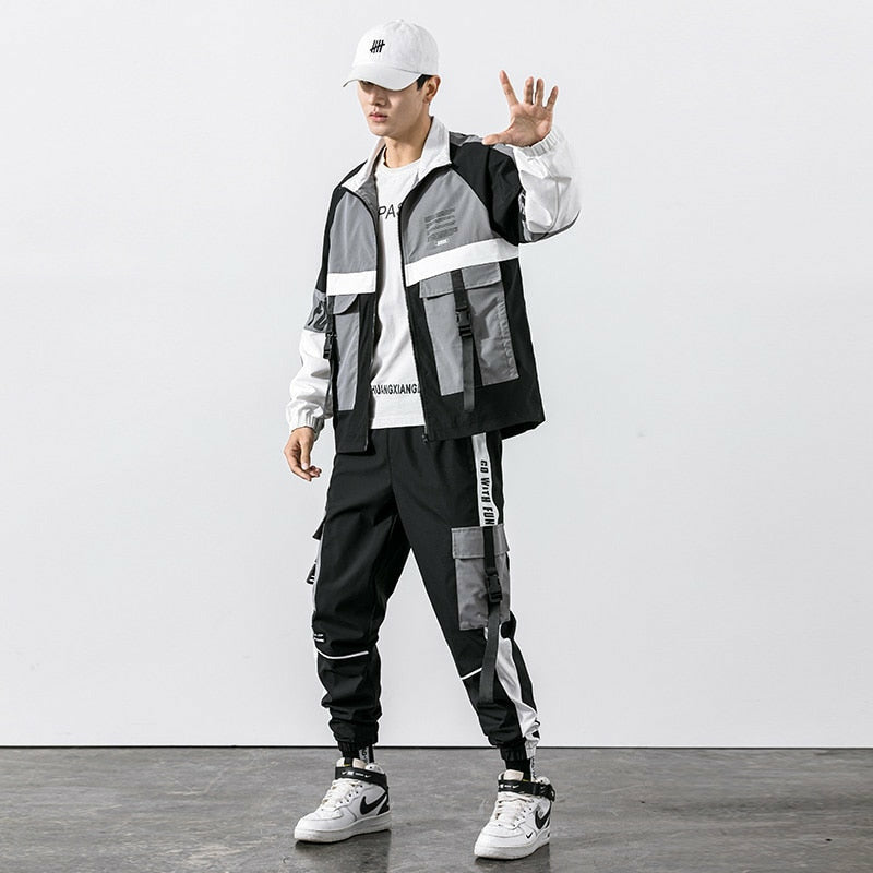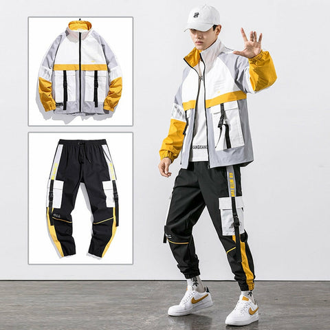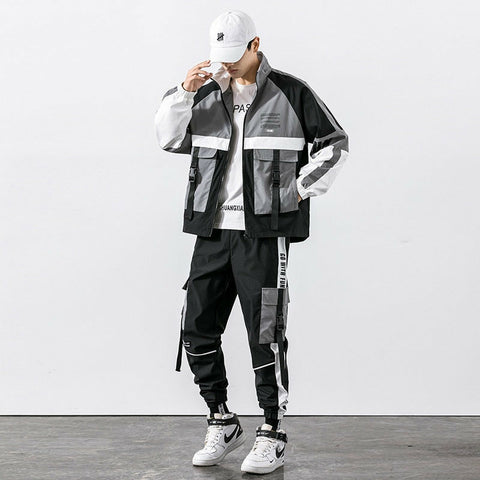 Hip Hop Work Wear Men's Jacket & Pant 2PCs Set Tracksuit Clothing