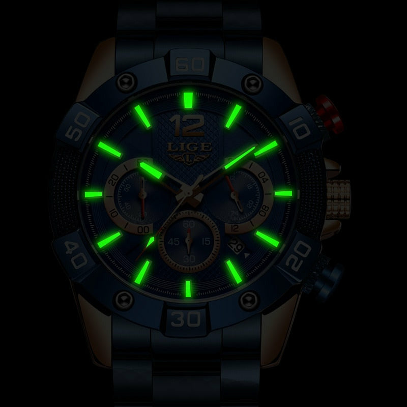 - Features: Stop Watch, Shock Resistant, luminous, Auto Date, Chronograph, Complete Calendar, Water-Resistant, Luminous Hands, Business Watch