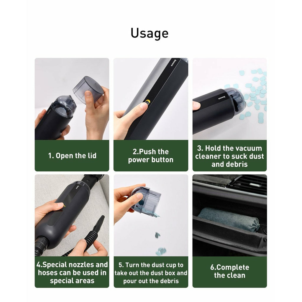 - PORTABLE AND EASY TO USE: Small size, equipped with a variety of suction head accessories, wireless charging use, very suitable for daily cleaning in the family or out-of-car use.