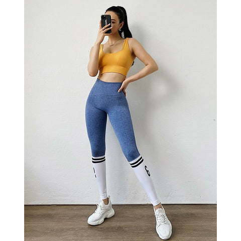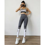 Striped Alphabet Woman Seamless Legging Yoga Pants Sports High Waist Full Length Fitness Workout Leggings