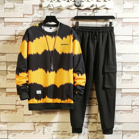 MEN'S SPORTSWEAR CASUAL PATCHWORK SWEATSHIRT+SWEATPANT