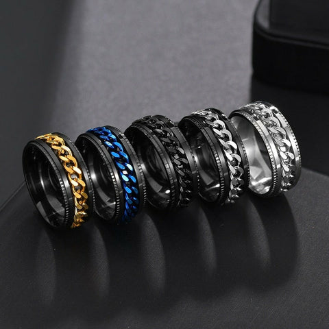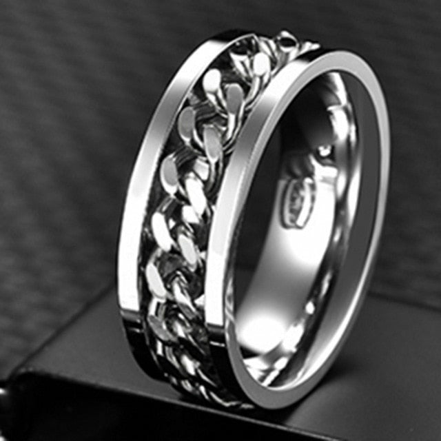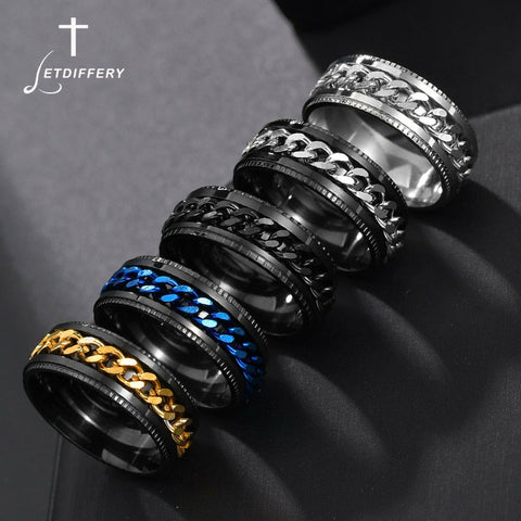 Stainless Steel Rotatable Fashion Rings High Quality Spinner Chain Punk Men Women Jewelry