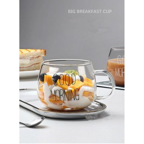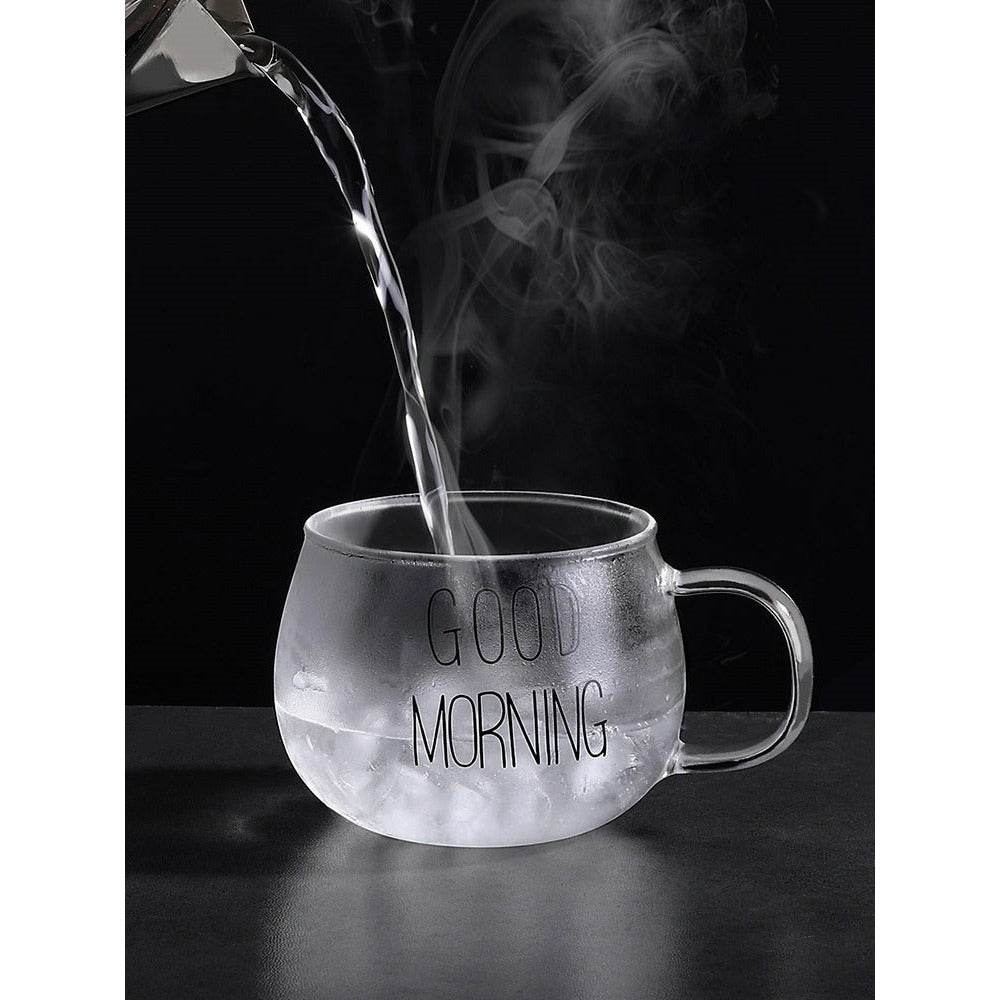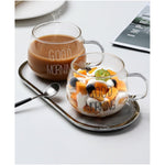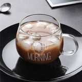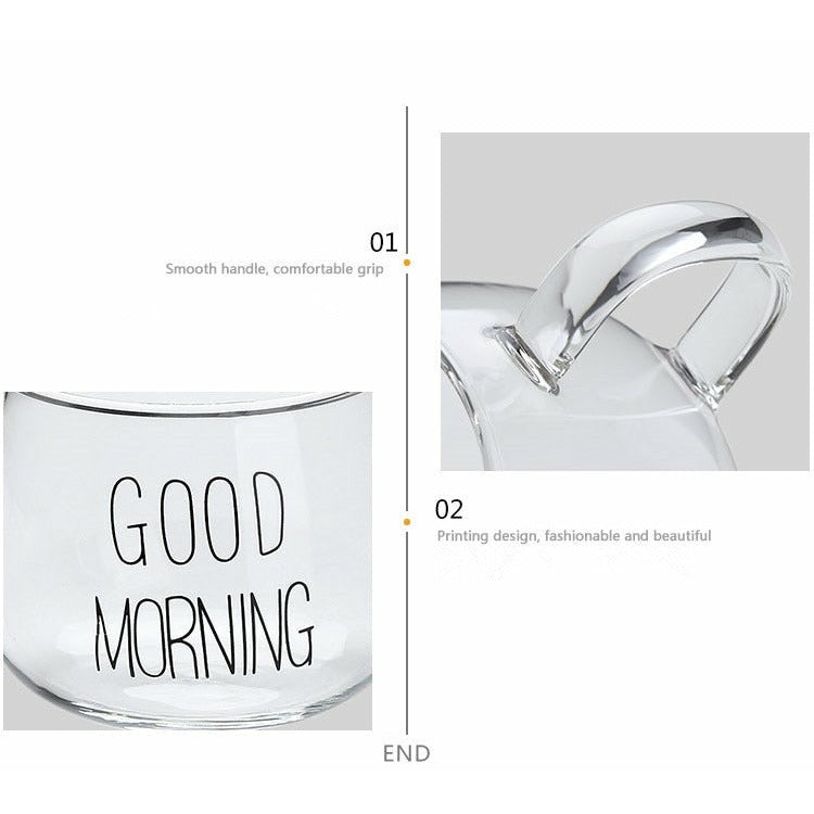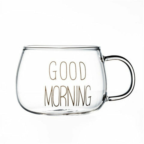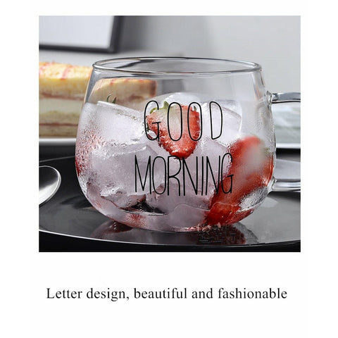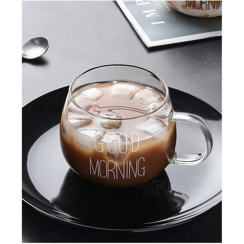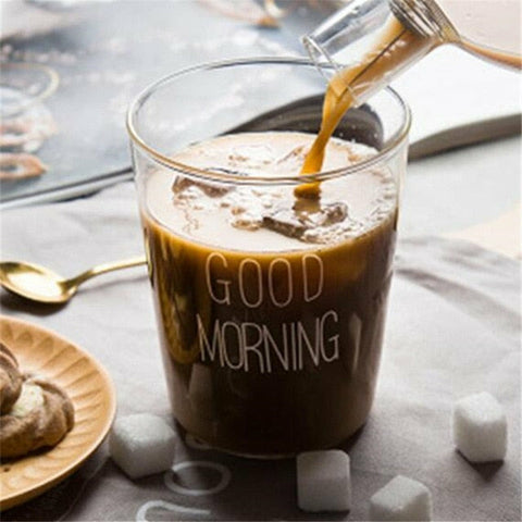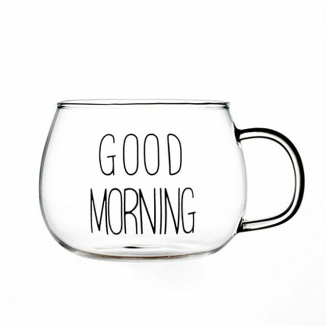 LETTER PRINTED TRANSPARENT GLASS TEA COFFEE CUP