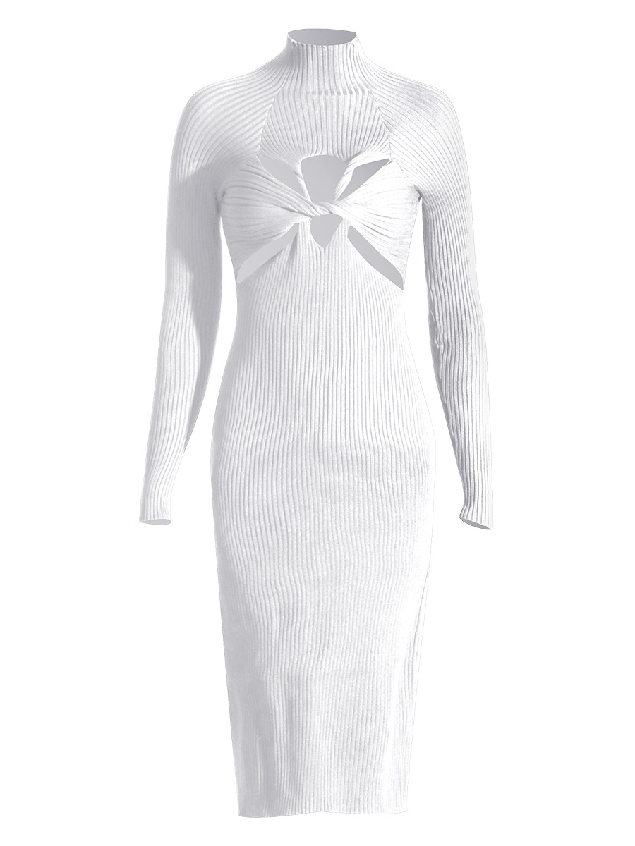 - Look chic and modern in this stylish women's knit dress. The slim half-high collar, long sleeves, and A-line skirt cross knot at the mid-calf give a unique touch to any look.