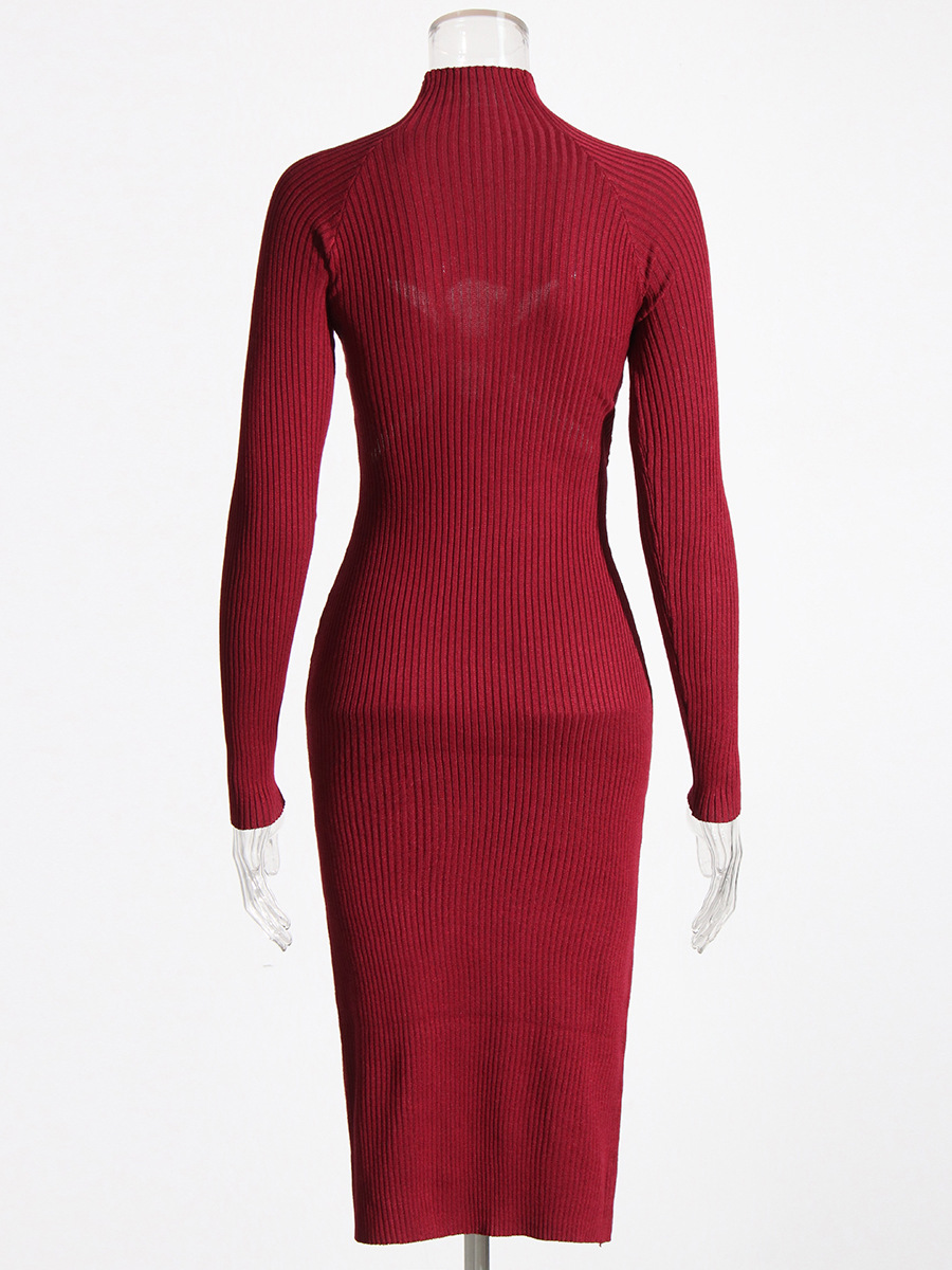 - Warm and stylish, this Women's Knit Dress features a slim, high collar, long-sleeves, and a cross knot mid-calf hem.
