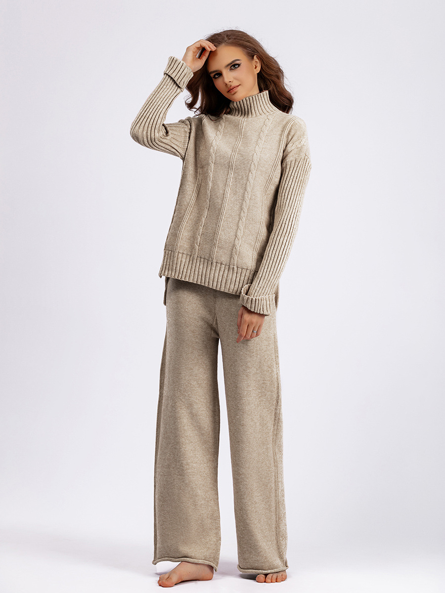 - Our High-End Half-Turtleneck Sweater Wide-Leg Pants Women's Two-Piece Set exudes sophistication and elegance.