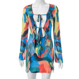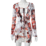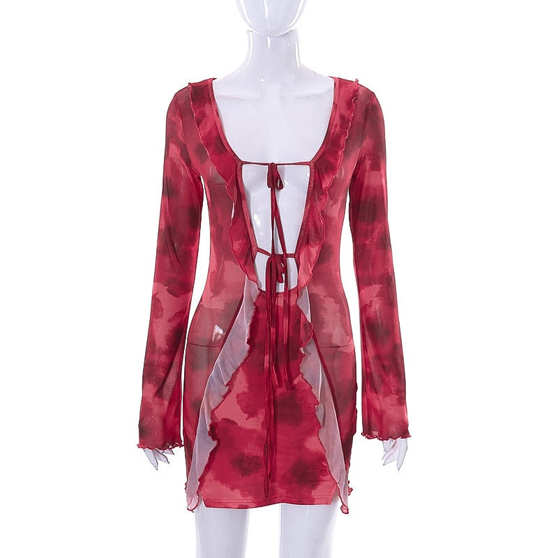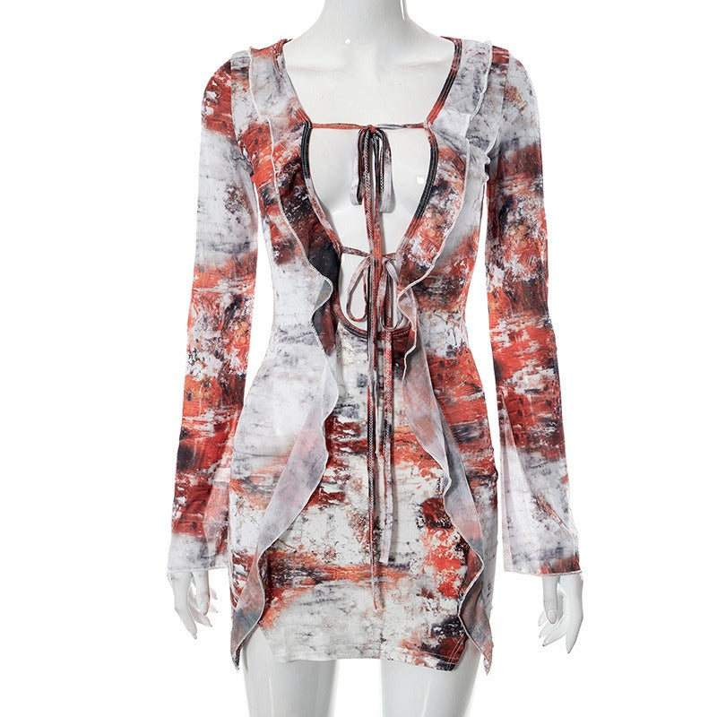 - This Women's Long Sleeve Strap Street Print Spicy Girls' Hip Wrap Dress is made of Polyester fabric, featuring a short skirt princess skirt, a V-shaped collar, a pile-up sleeve, long sleeves, and a high waist.