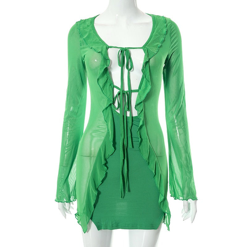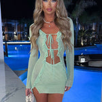 WOMEN'S LONG-SLEEVE STRAP HIP WRAP DRESS