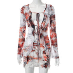 - Featuring a princess skirt, long sleeves, and a high waist, this dress is available in sizes S, M, and L. It looks effortless and elegant in this luxurious street print dress.