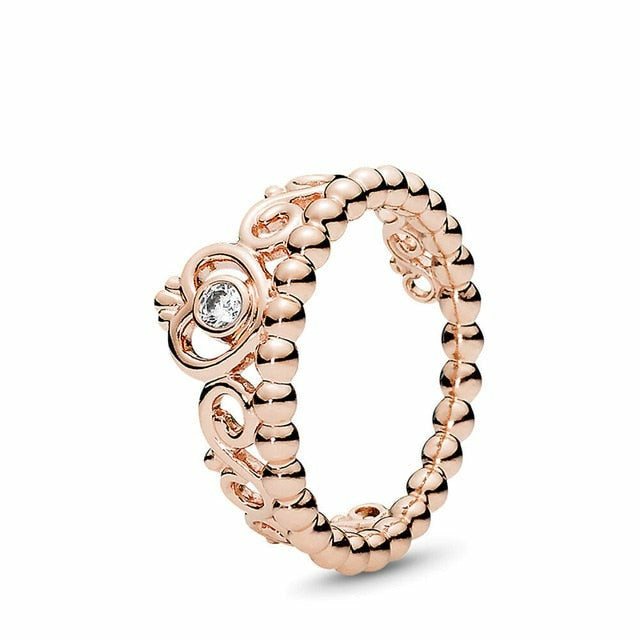 925 Sterling Silver Rose-Gold Princess Tiara Sparkling Rings Women Engagement Jewelry