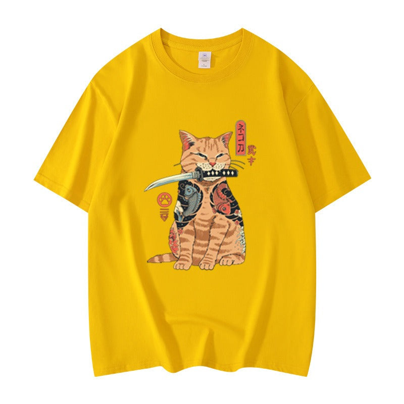- Featuring a unique and playful cat design, this t-shirt is perfect for anime lovers and casual wear enthusiasts alike.
