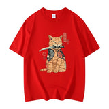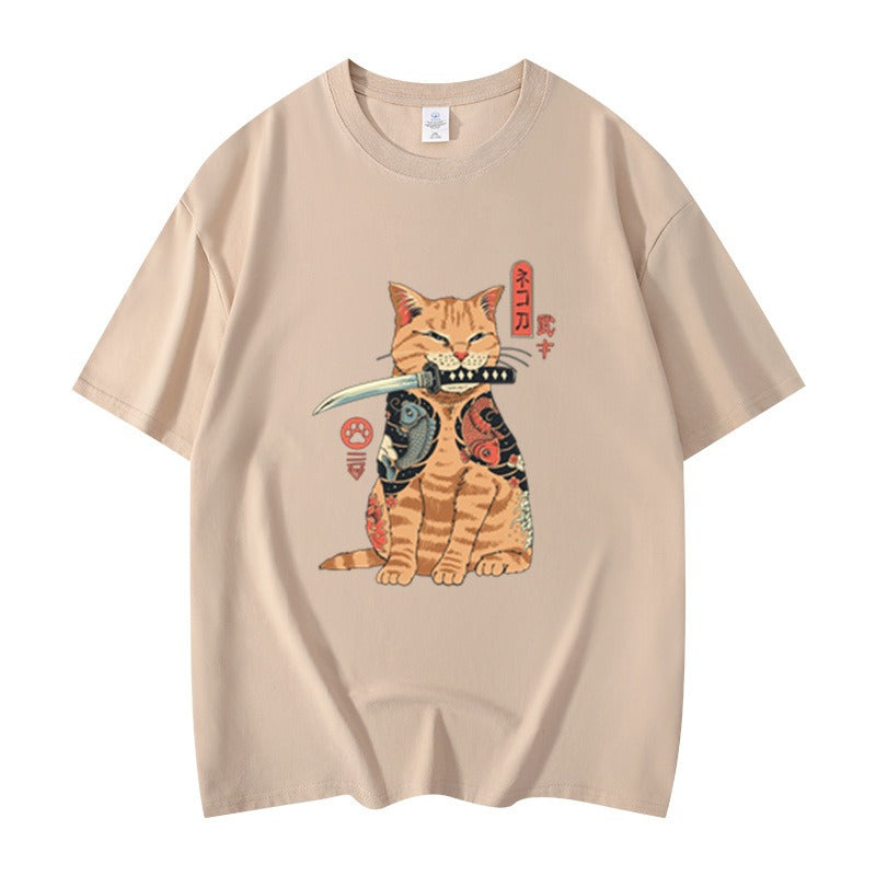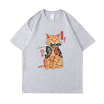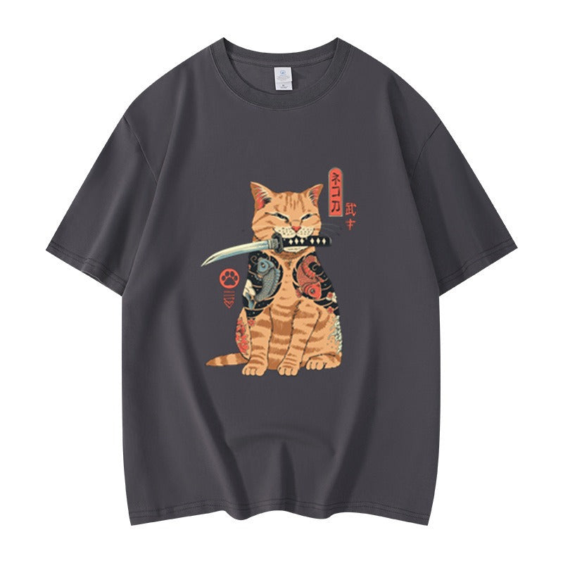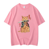 FUN AND CASUAL ANIME-INSPIRED CAT PRINTED T-SHIRT