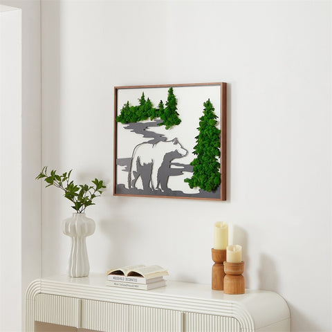 - Nature-Inspired Ambiance: The presence of the bear artwork amidst the lush green forest created by preserved moss evokes a sense of tranquility and connection to nature, enhancing the overall ambiance of any space.