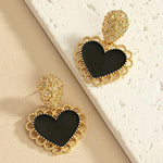BLACK EPOXY METAL HEART EARRINGS WOMEN'S JEWELRY