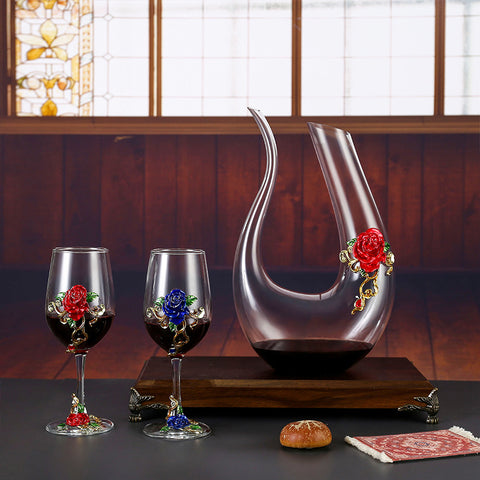 - Make every sip a celebration with this enamel crystal red wine goblet. An exquisite touch for elegant evenings.