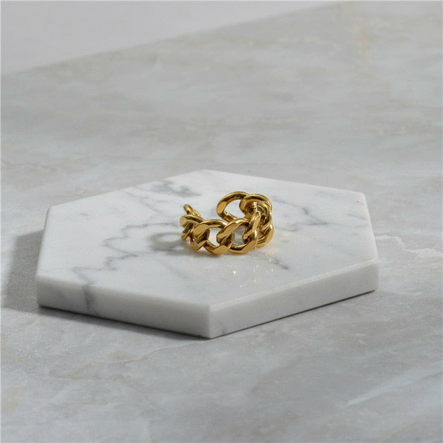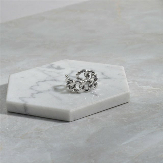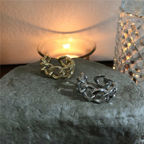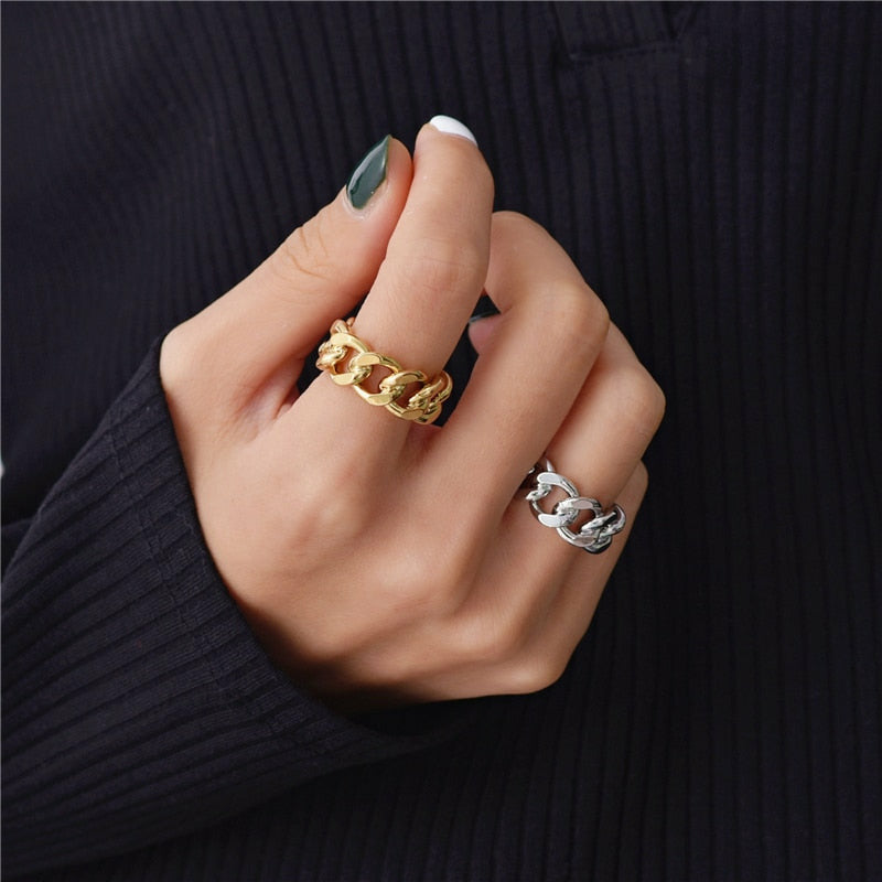 Gold Silver Color Chunky Chain Rings Link Twisted Geometric Adjustable Rings Jewelry