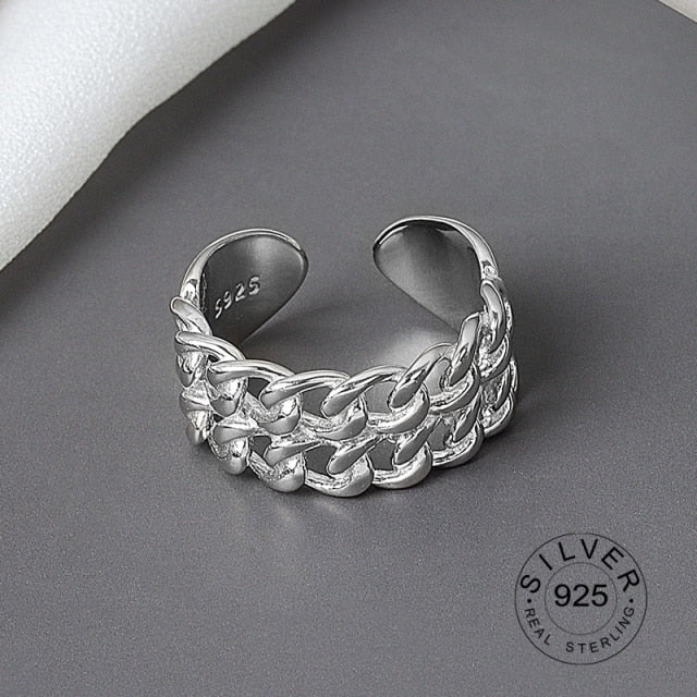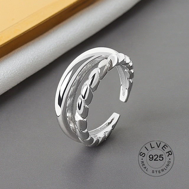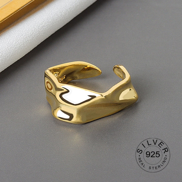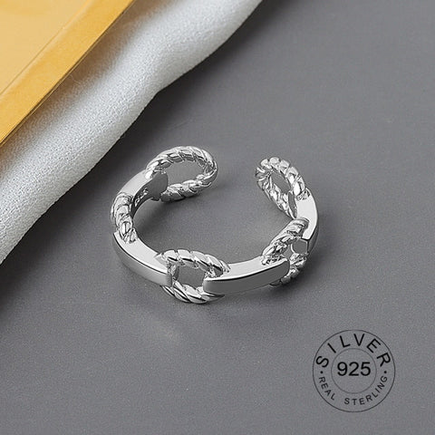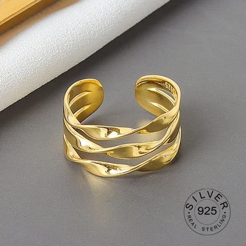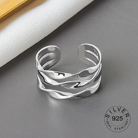 925 Sterling Silver Open Ring Men Women Irregular Wave Fashion Ring Jewelry