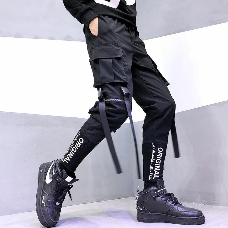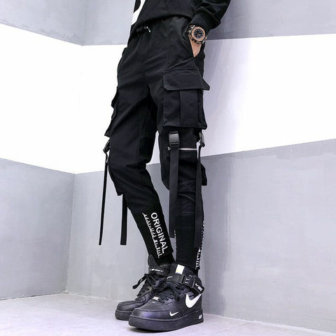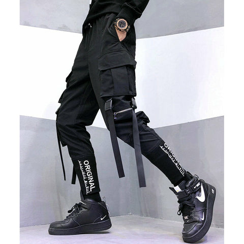 Streetwear Ribbons Pockets Harem Pants Men Summer Casual Hip Hop Joggers Pants