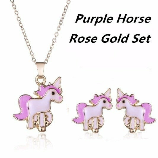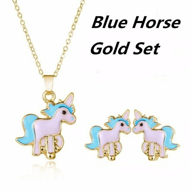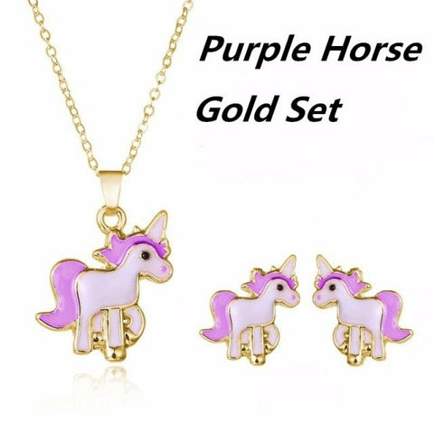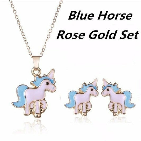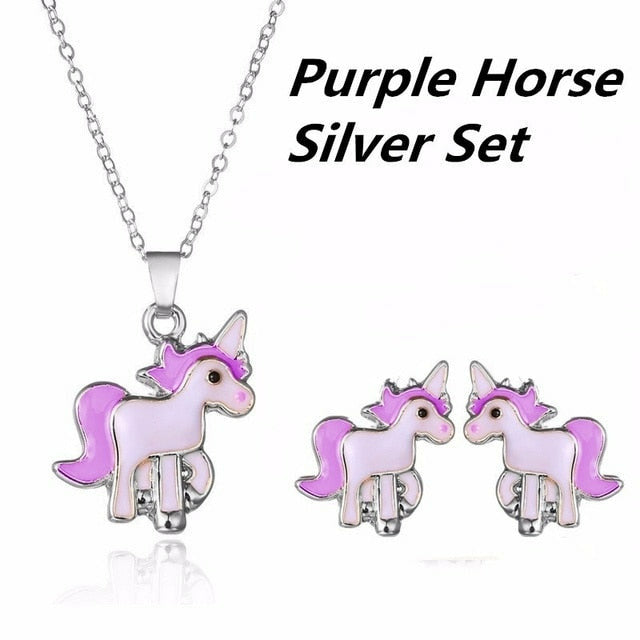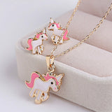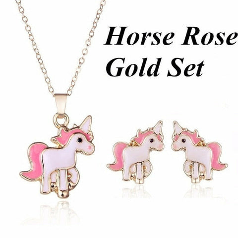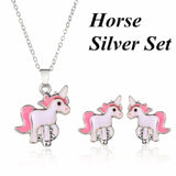UNICORN CUTE EARRINGS NECKLACE JEWELRY SET
