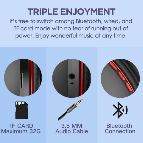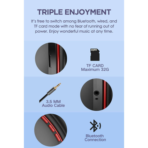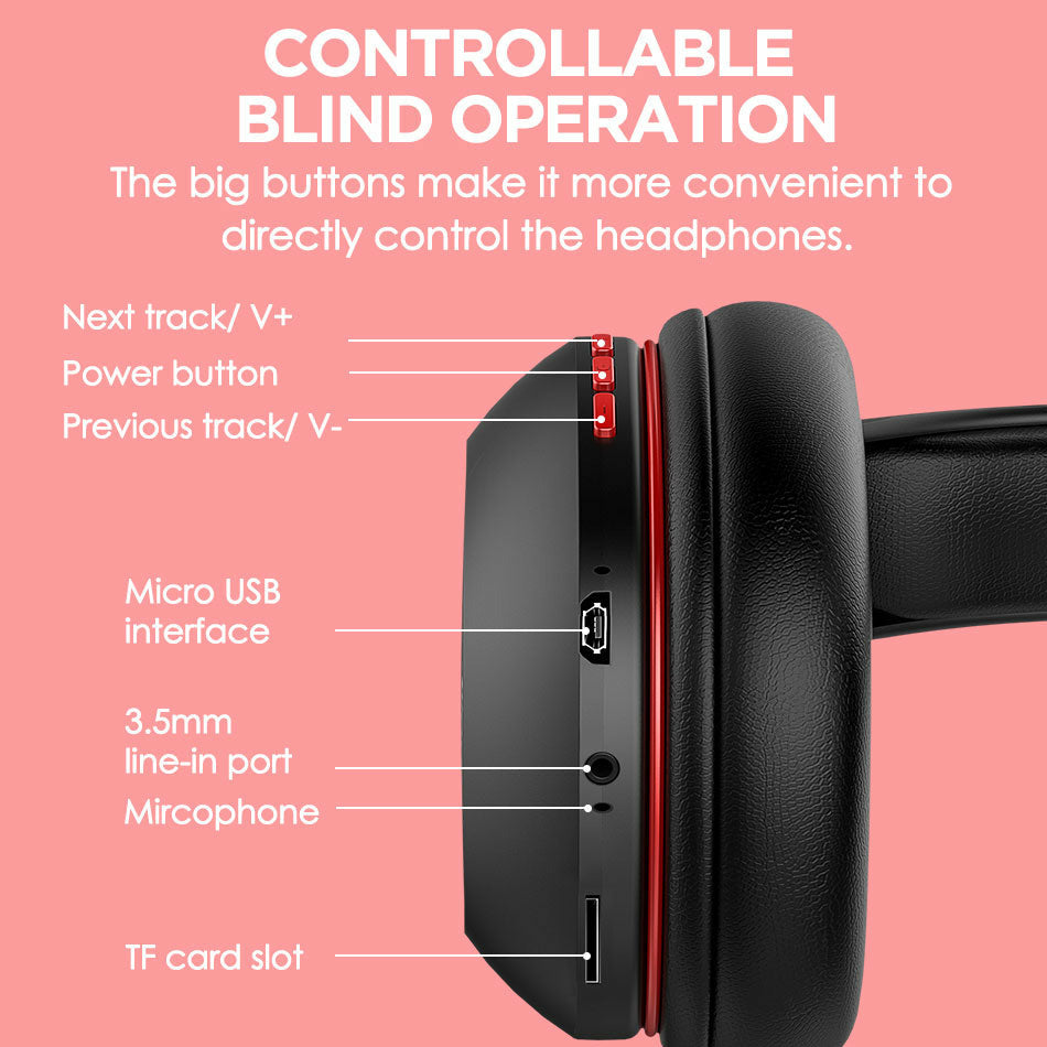 Bluetooth Headset Over-Ear Wireless Bluetooth 5.0 Stereo Foldable Headphones