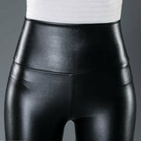 Women PU Leather Pants High Waist Elastic Slim Leather Leggings