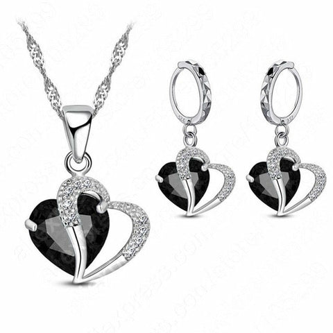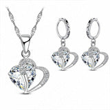 Luxury Women 925 Sterling Silver Cubic Zircon Heart Necklace Pendant Earrings Sets