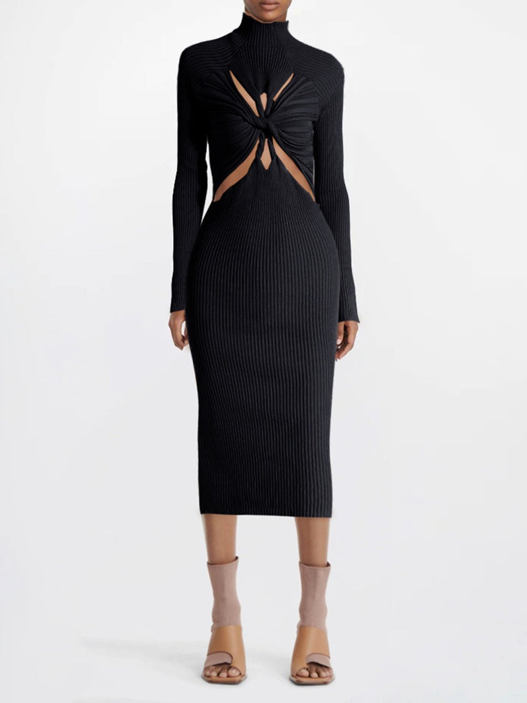 - This Women's Knit Dress Slim Half High Collar Long Sleeve Cross Knot Mid-Calf Dress is the perfect addition to your wardrobe.