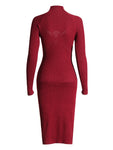 - Warm and stylish, this Women's Knit Dress features a slim, high collar, long-sleeves, and a cross knot mid-calf hem.
