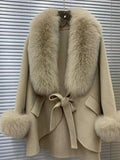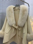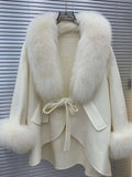 - Discover the epitome of luxurious fashion with this high-end fashionable fur collar woolen cloak jacket.